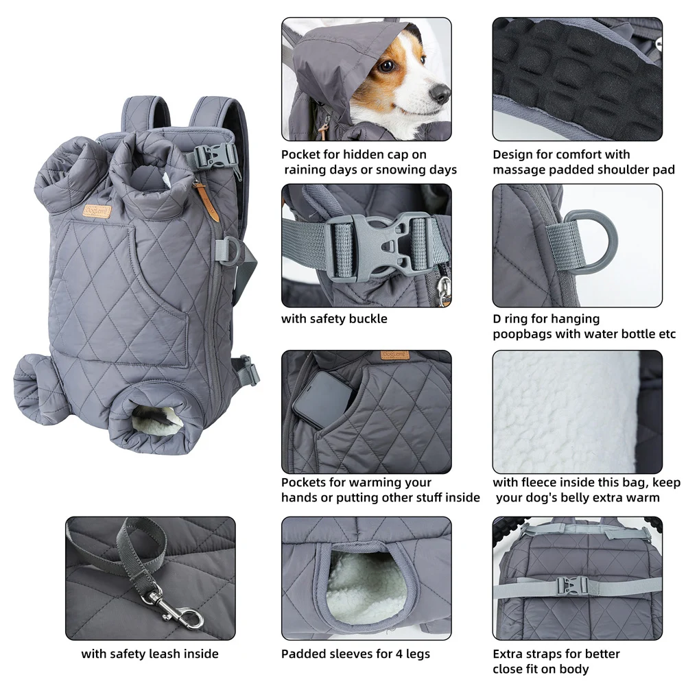 5. HIDDEN CAP : with a cap included hidden inside this bag , easy to pull it out for your dog when it is windy , raining or snowing.
